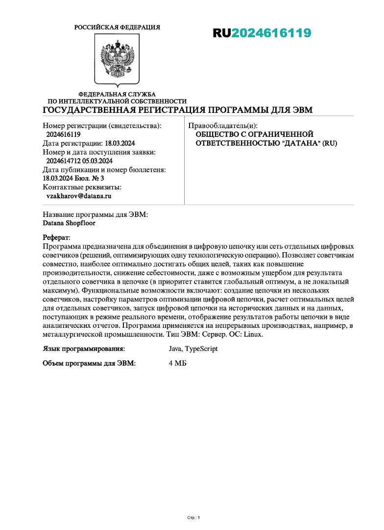 © Все исключительные права на программу Datana Shopfloor принадлежат ООО «Датана».